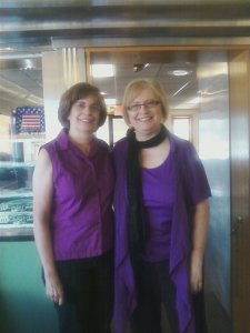 And imagine my surprise when I saw that she and I were wearing exactly the same outfit. Well color wise. Purple shirt and Black slacks.