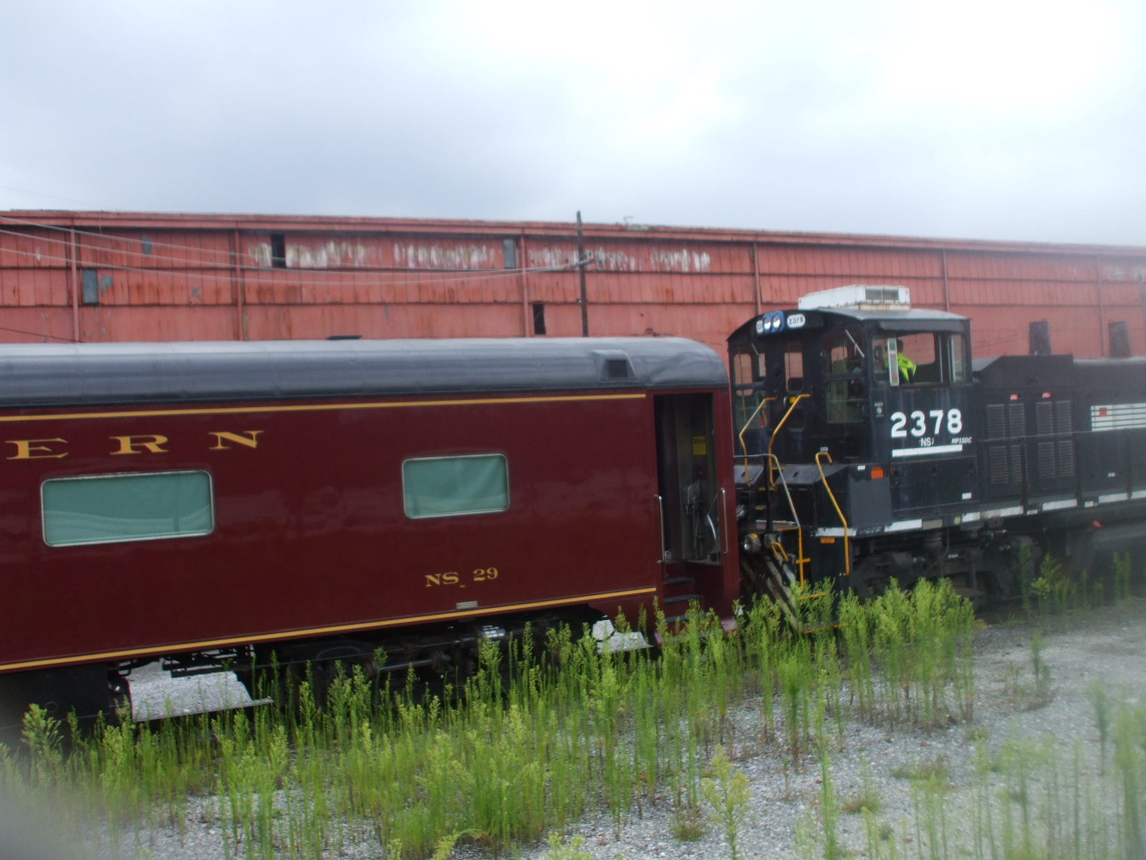 You can always tell in this area when there is a special event or something newsworthy regarding the railroad. There appear odd non-commercial cars at the local shops. And by shops I mean the once PRR, now Norfolk-Southern Railroad Shops where engines are refurbished and cars are renewed.