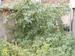 Flash forward many months … and absolutely no effort … later. And here we have the Tomato Forest which has sprung up from the lowly rotten tomato. The Tomato Forest has provided Linda, David, Me and about four other friends with a summer full of tomatoes to our hearts content. It even has flowers at the front of it all.