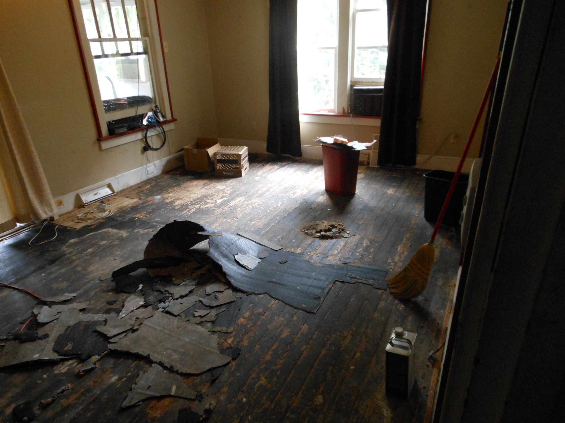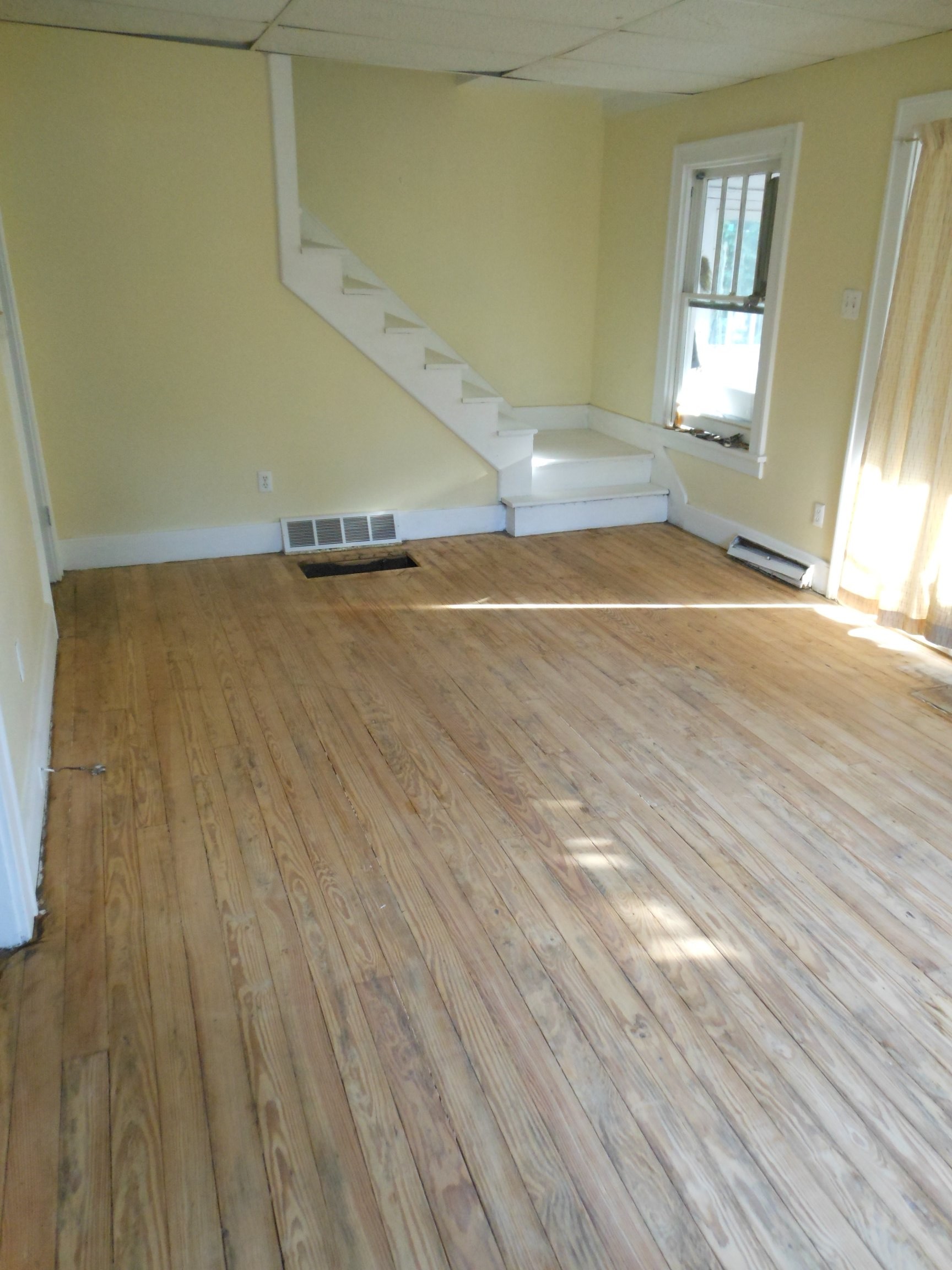 As her foot hit one of the tacky 12 X 12 floor tiles, she said “You know I think there is a good hardwood floor under all this. You should think about doing the floor.”