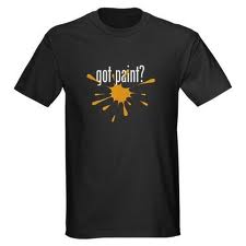 Rather than having me run back to my house to get a t-shirt suitable for painting, Linda was kind enough as to lend me one of her paint splattered t-shirts to wear.
