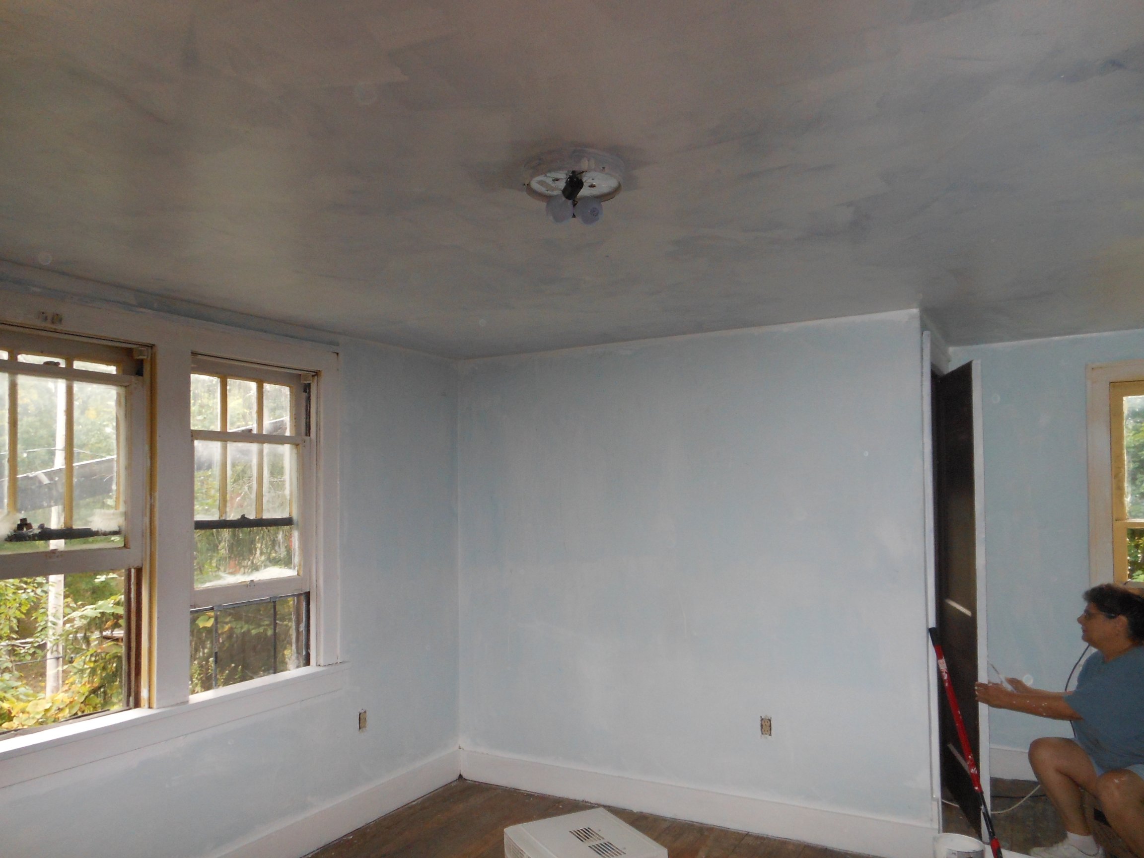 So after much lugging and tugging … towing and throwing … the room was ready for paint … almost. First something had to be done about the rather inventive paint that was on the walls. And once again Kilz came to the rescue. Kilz for all, although even the mighty Kilz was shaking its head … as only paint can.