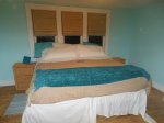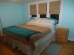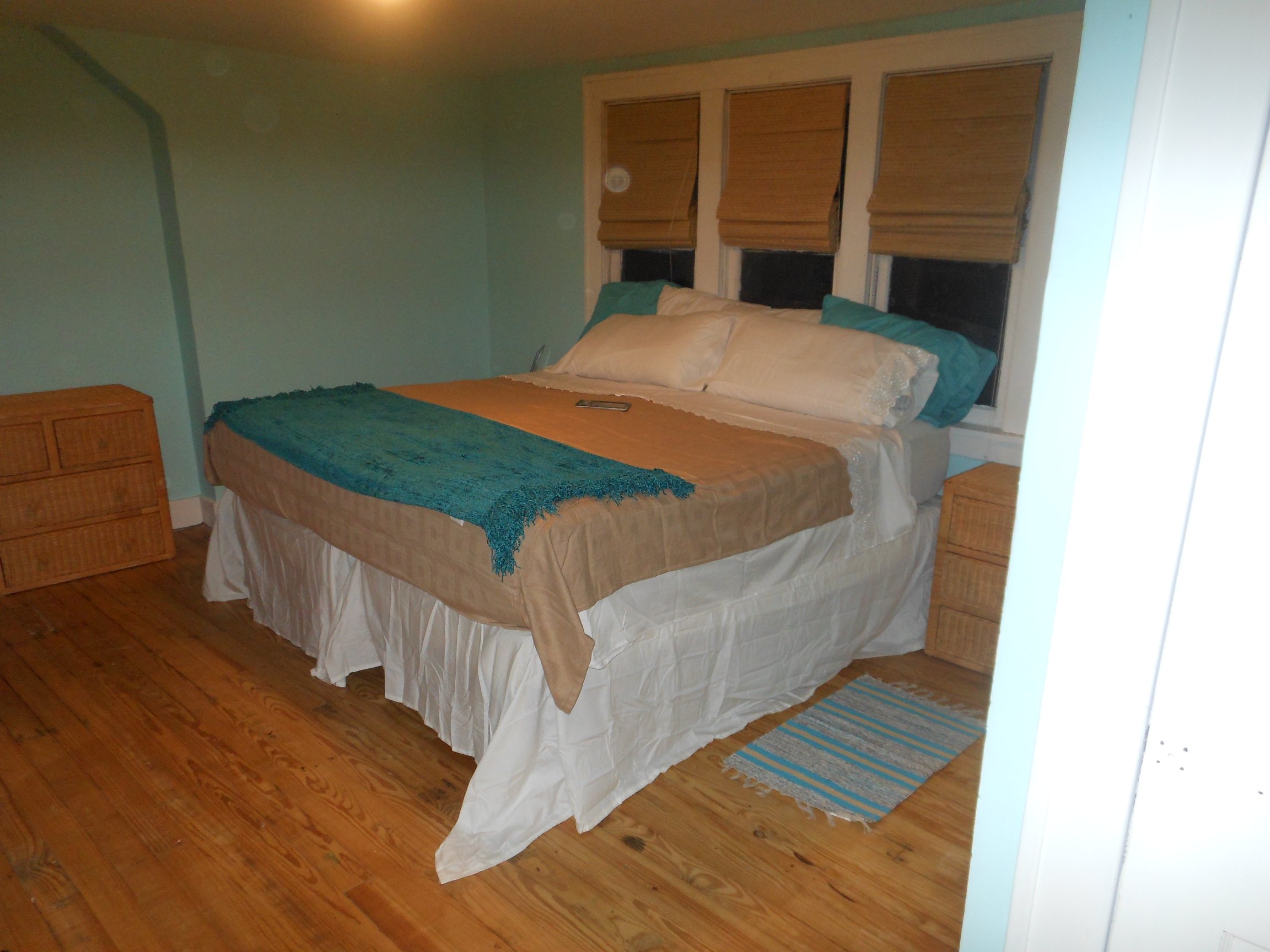 The color scheme that kept coming to mind was a light beach-like scheme. Turquoise … with wide white wood accents … and some kind of light bamboo light shades and window blinds. The bedding and curtains were less clear in my mind … but clean, light and airy was definitely the order of the day.