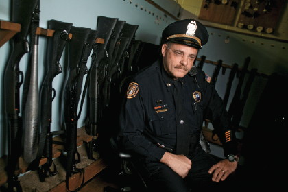 Maj. Doug Barnes of the Memphis police department sits inside the Old Allen Station Armory