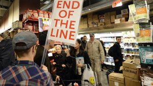 With purchases ready to go, I made my way to the front of the store where there were … tons and tons of people already waiting in line.