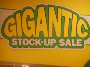 But that made sense because after all, they were having a GIGANTIC Stock-Up Sale. The sign said so.