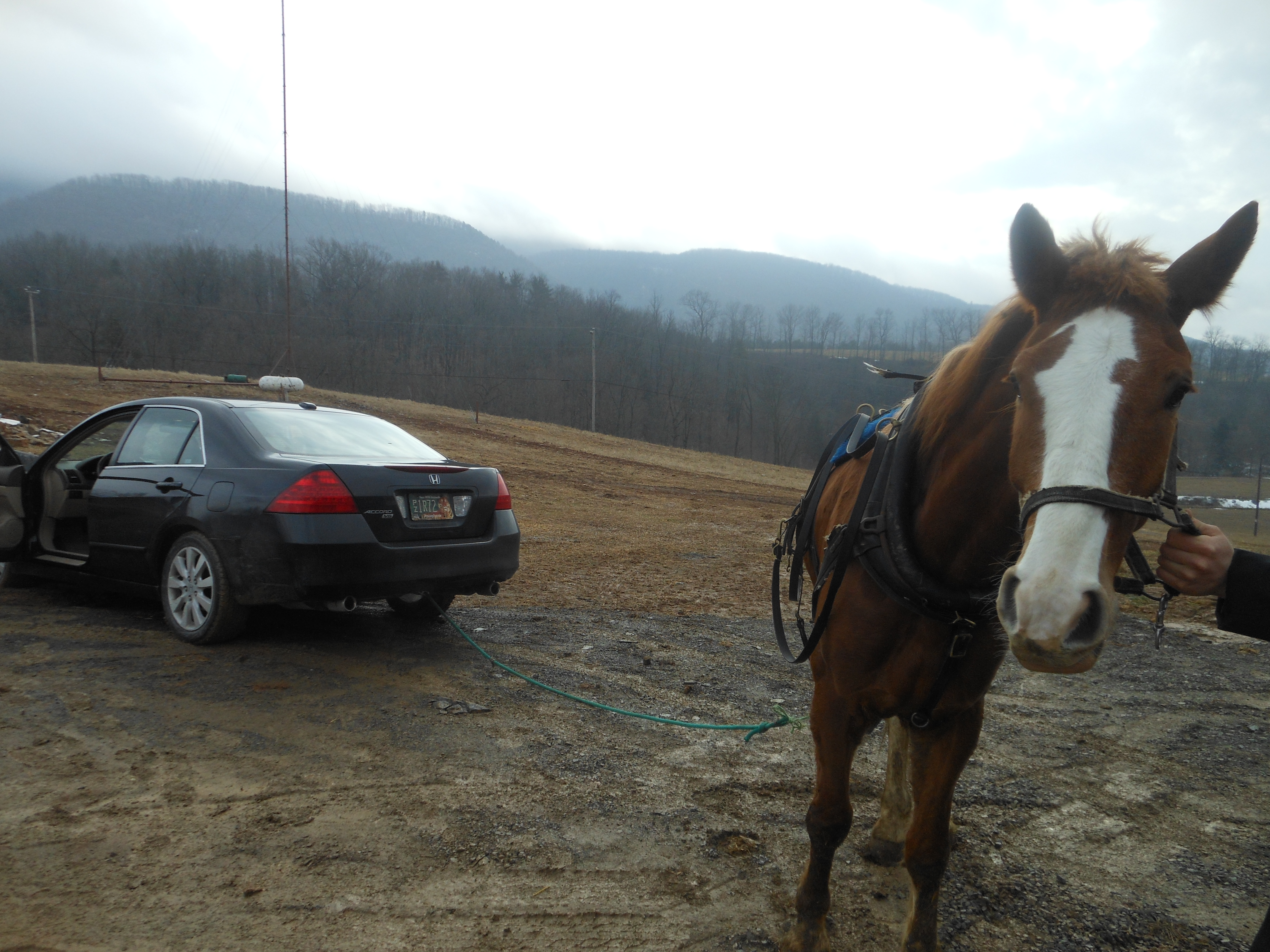 In no time flat, the nameless horse pulled my car out of the mud and back onto firmer driveway.