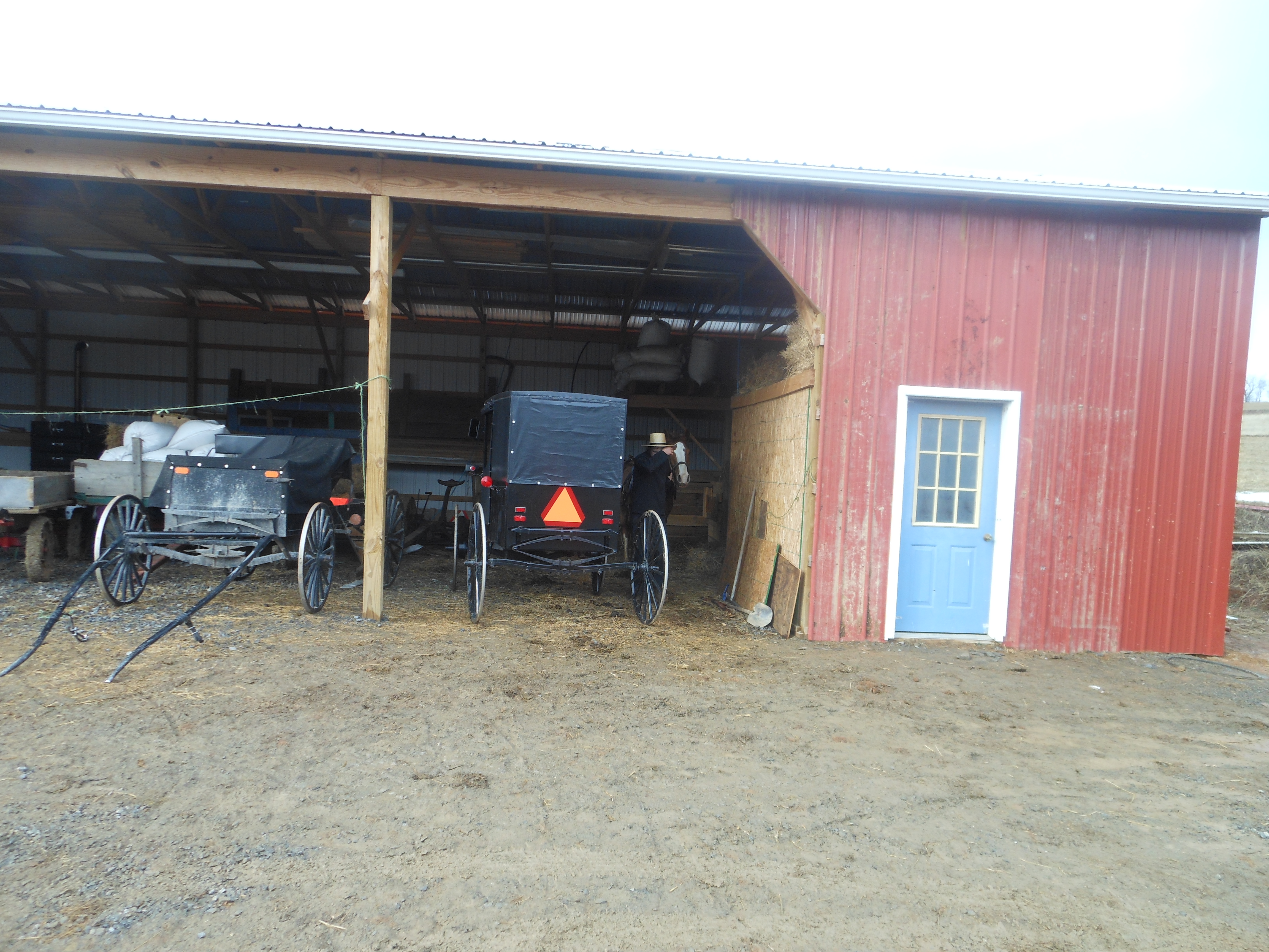 I was busy admiring the two Amish carts and a buggy sheltered in the structure … wondering what was in the enclosed room at either end. Probably an office or tack room or something.