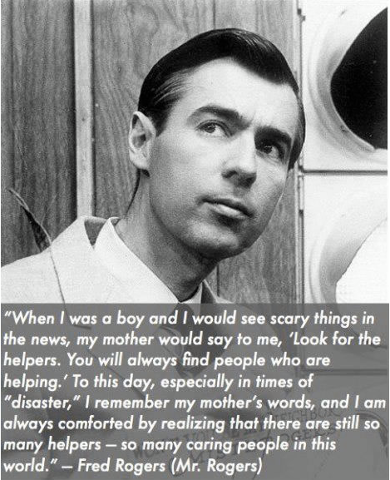 I must admit, besides feeling good about the innate goodness of people in time of crisis, the pictures and continual reference to Mr. Rogers made me realize that he had a profound impact on us as children … and the adults we would later grow to become.