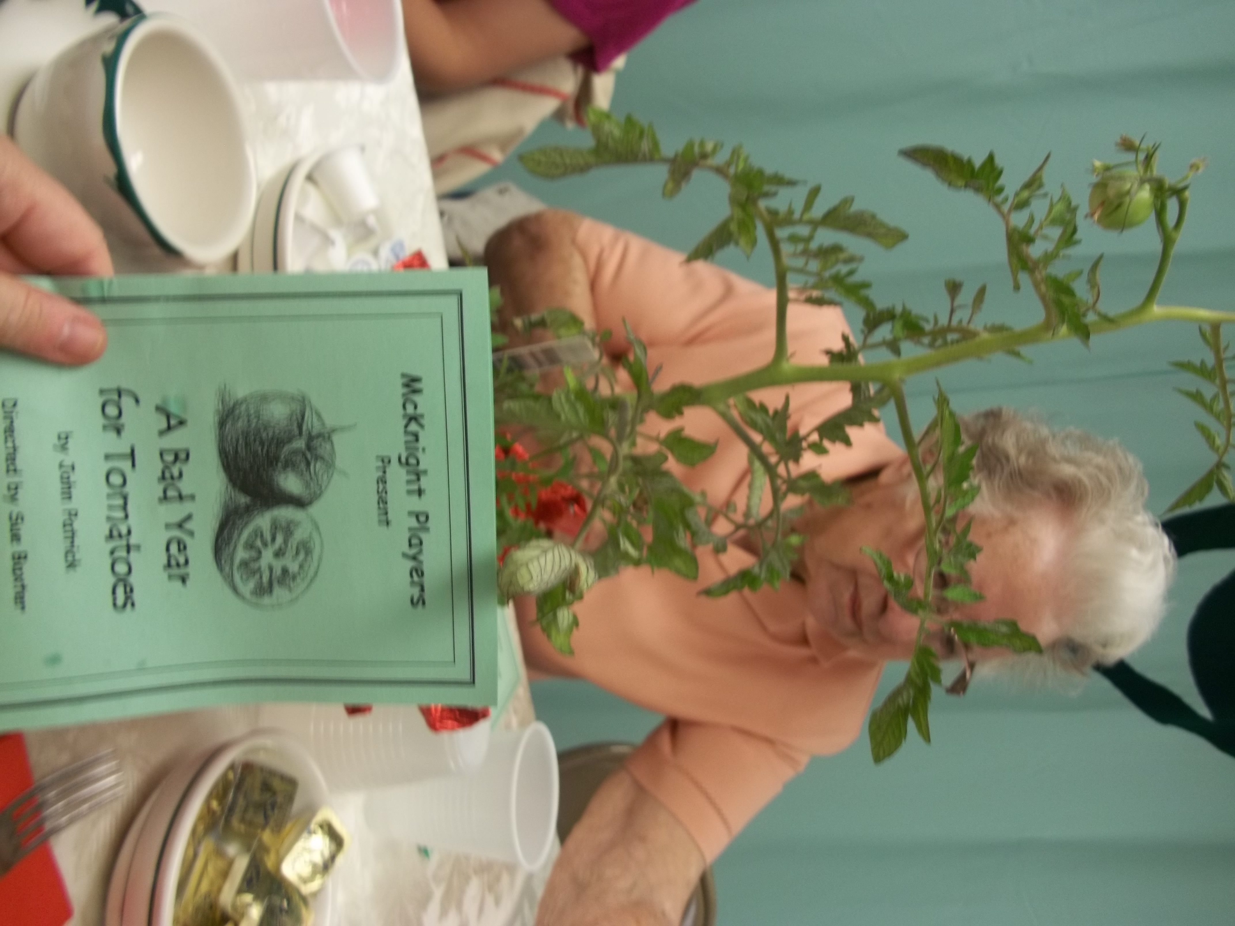 The room held maybe eighty people … ten tables of eight each. And as I sat down I swear the centerpiece … a small tomato plant … shuddered in fear. Who says plants aren’t intuitive?