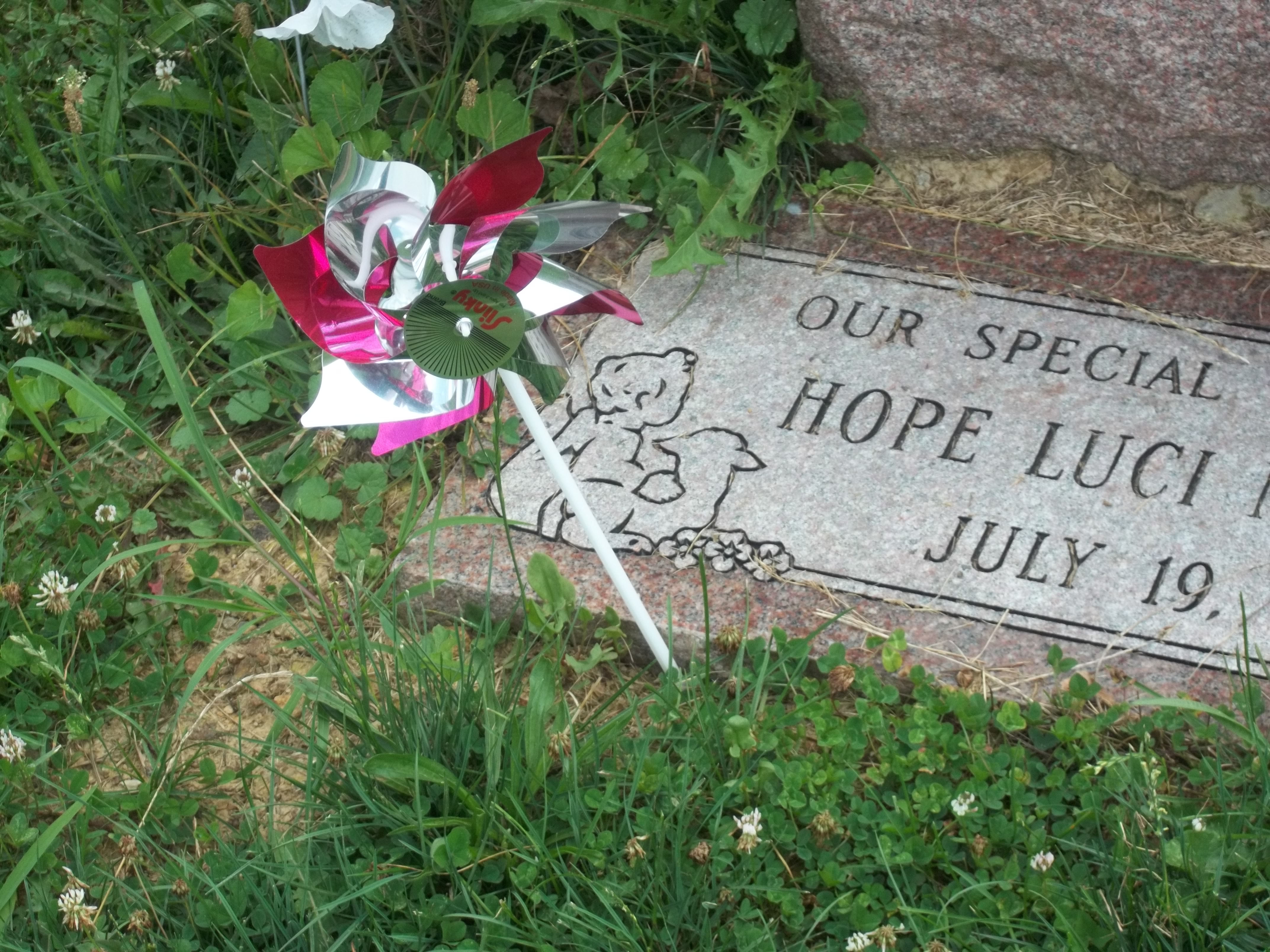 For her granddaughter’s grave. The tiny baby … appropriately named Hope … who died at birth … one year ago … today.